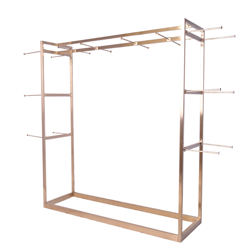 Varejo de loja de fixação pendurada roupas, design personalizado da loja de metal de ouro roupas vestido de exibição rack