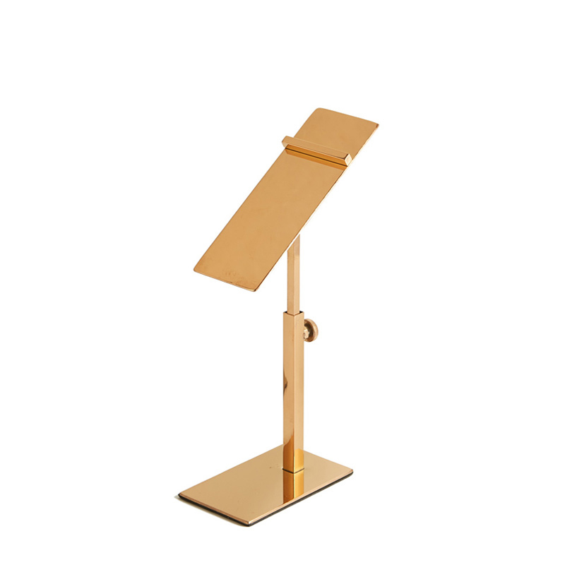 Expositor de sapato para loja, suporte de sapatos ajustável com altura de metal polido ouro para loja